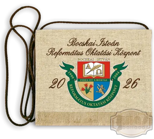 Ballagási tarisznya Vászon festett egyedi iskola logóval Bocskai - Halásztelek