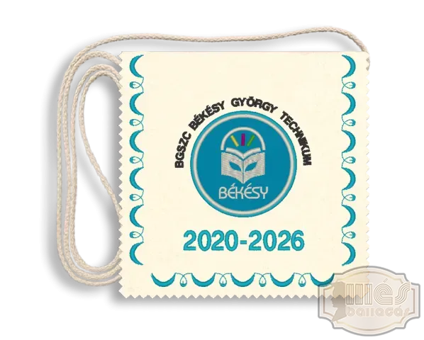 Ballagási tarisznya Békésy - Budapest Polifilc alapon Iskolacímerrel hímzett